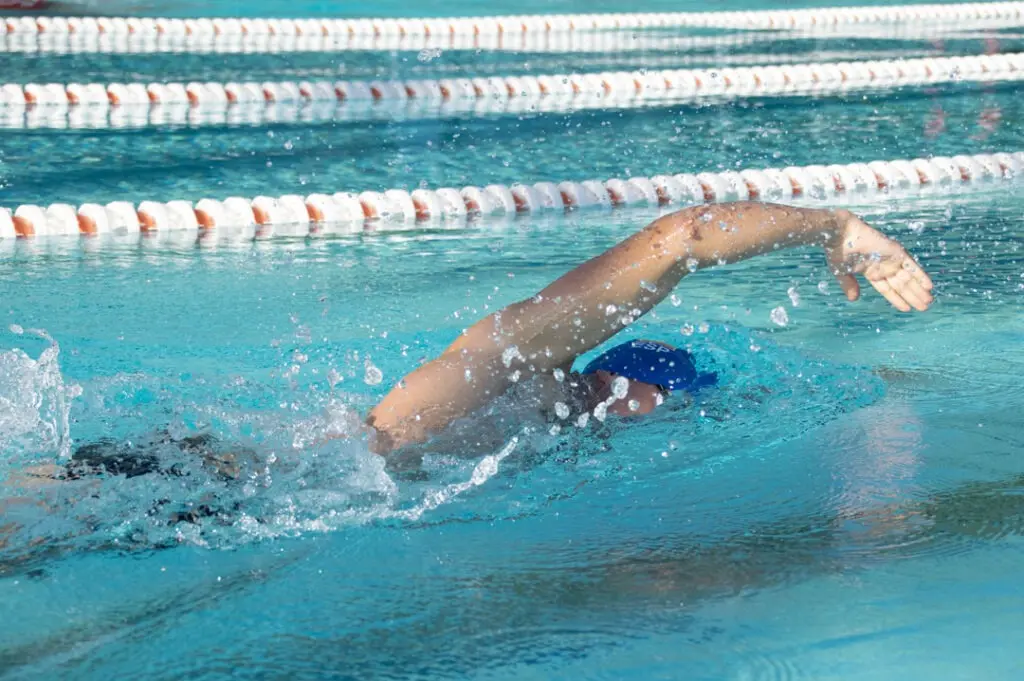 - Estira los brazos hacia adelante, llevando uno bajo tu cuerpo hasta el muslo. Repite con el otro brazo mientras el primero sale del agua para volver a su posición inicial.